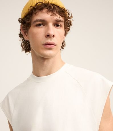 Regata masculina no modelo boxy, confeccionada em algodão mais sustentável, gola raglan.