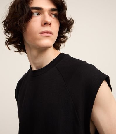 Ref: Regata masculina no modelo boxy, confeccionada em algodão mais sustentável, gola raglan.