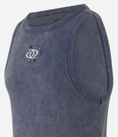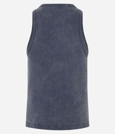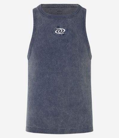 Ref: Regata masculina confeccionada em ribana mais sustentável com boas práticas ambientais, gola redonda. Peça no modelo boxy com etiqueta emborrachada localizada e efeito estonado.