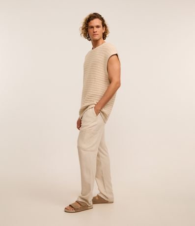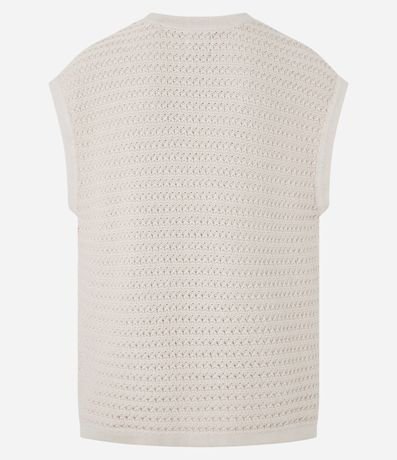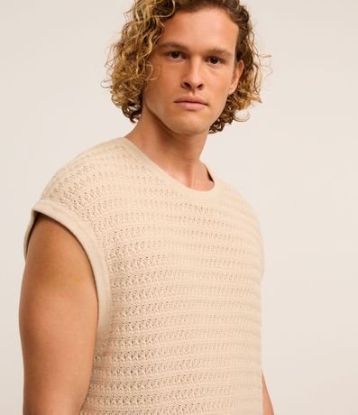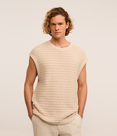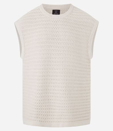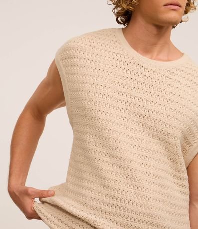 Regata masculina confeccionada em tricô, de modelo boxy, com gola redonda e pontos texturizados.