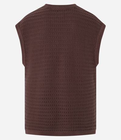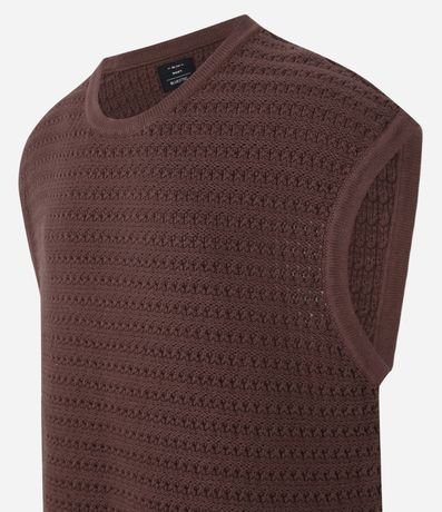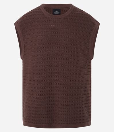 Regata masculina confeccionada em tricô, de modelo boxy, com gola redonda e pontos texturizados.