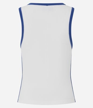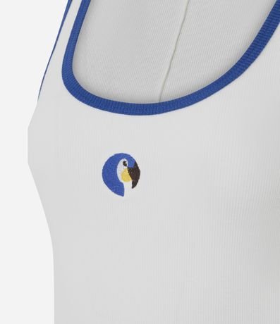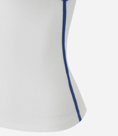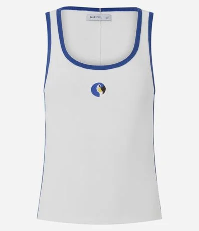 Ref: Regata em ribana com toque macio e viés contrastante que destaca o visual esportivo. Possui gola redonda, acabamento canelado e bordado frontal delicado. Peça moderna e leve para compor looks casuais, confeccionado em algodão de certificado BCI.