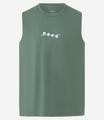 Ref: Regata masculina confeccionada em material mais sustentável com boas práticas ambientais, peça no modelo comfort com gola redonda e estampa localizada.