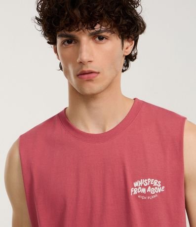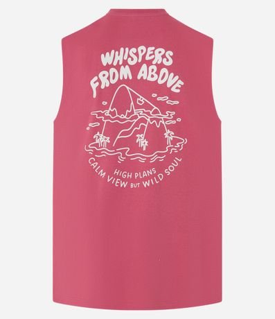 Regata masculina confeccionada em algodão mais sustentável através de boas práticas, no modelo comfort. Possui gola redonda em ribana e estampa lettering "Whispers from above".