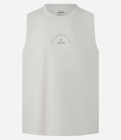 Ref: Regata confeccionada em algodão mais sustentável, gola redonda, no modelo comfort com estampa lettering.