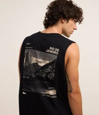 Ref: Regata masculina confeccionada em algodão mais sustentável, gola redonda, no modelo comfort com estampa photoprint da cidade do Rio de Janeiro.