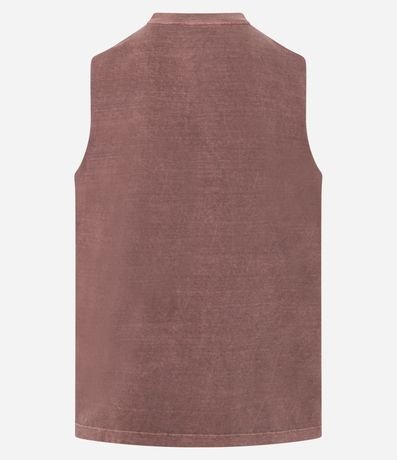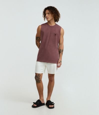 Regata masculina modelo comfort em meia malha estonada, com gola redonda e estampa localizada de lettering Sol Chasing Sunshine. Ideal para compor looks casuais e frescos com estilo e consciência ambiental.