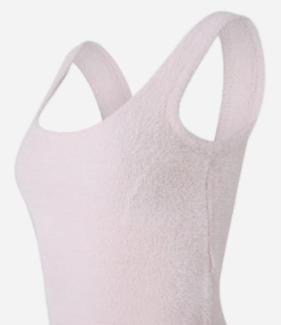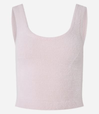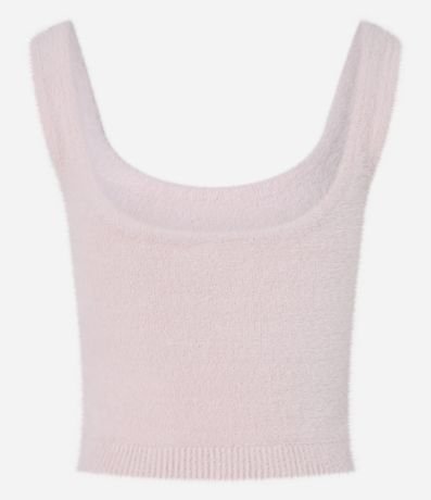 Regata cropped confeccionada em tricô leve, alça larga e com textura de pelinhos.