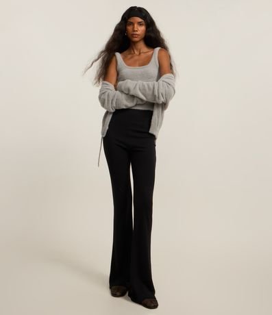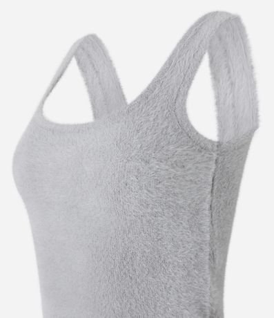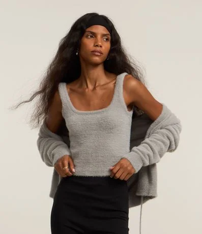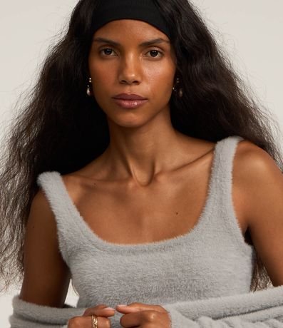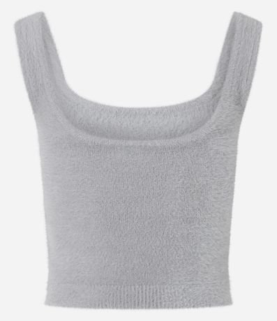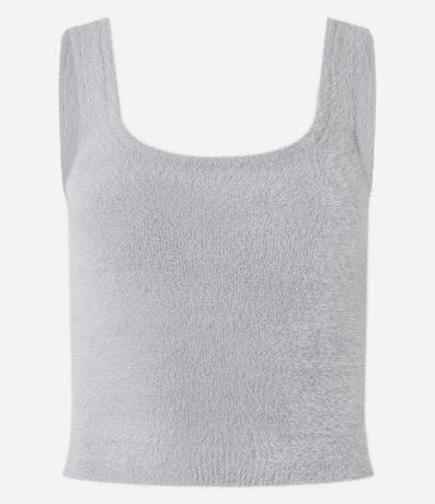 Regata cropped confeccionada em tricô leve, alça larga e com textura de pelinhos.