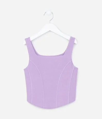 Ref: Regata cropped infantil com textura canelada, sem mangas e com nervuras na frontal.