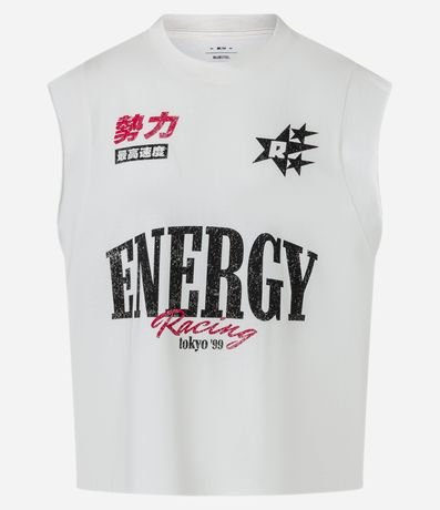 Ref: Regata masculina confeccionada algodão mais sustentável através de boas práticas ambientais, com modelo diferenciado. Possui gola redonda, estampa oriental e lettering "Energy Racing".