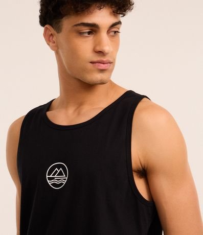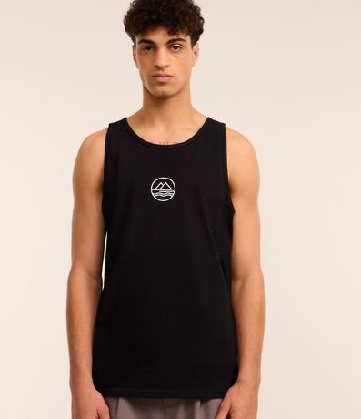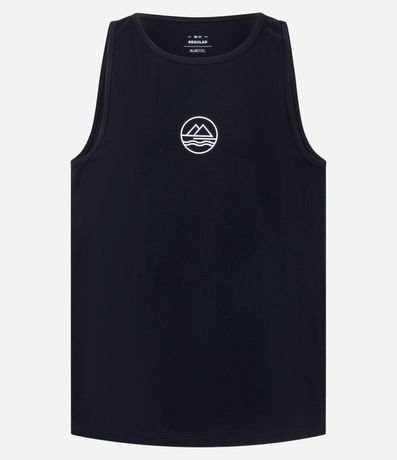 Regata regular confeccionada em algodão com gola redonda e estampa no peito de montanhas atrás do mar ilustradas de forma geométrica. Este produto possui algodão certificado BCI em sua composição, além de ter sido produzido através de processos mais sustentáveis com boas práticas ambientais, sendo ambientalmente mais responsável.