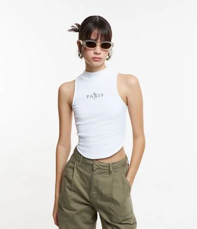 Ref: Regata golinha alta, confeccionado em algodão e com estampa em lettering Paris.
