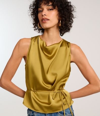 Regata em Cetim com Decote Degage e Amarração na Cintura