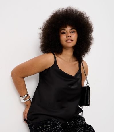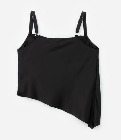 Ref: Blusa acetinada com alcinhas reguláveis, decote degagê e barra assimétrica.