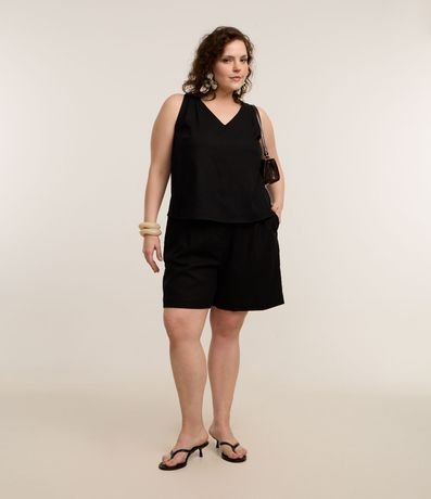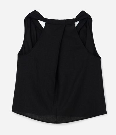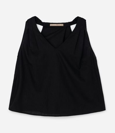 Blusa regata confeccionada em tecido composto por viscose certificada e linho.