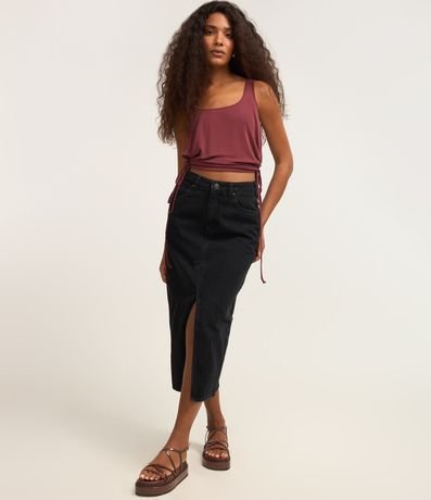 Ref: Blusinha regata confeccionada em ribana com modal mais sustentável, leve textura e amarração lateral com recorte cut out.