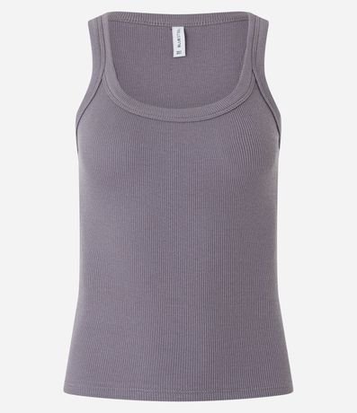 Blusa regata em ribana com decote redondo. O diferencial desta blusinha é conferido pela sua textura listrada.
