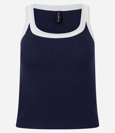 Ref: Regata confeccionada em ribana de algodão, sem estampa e com cavas e gola contrastante.