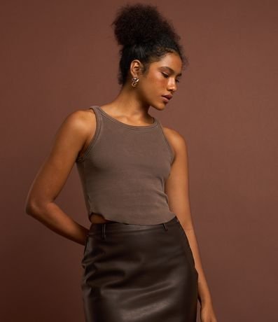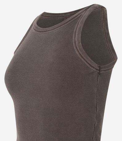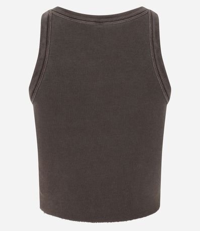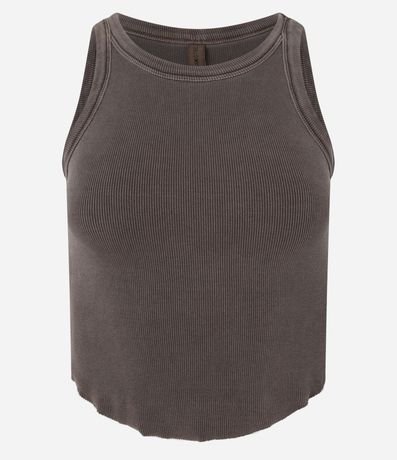 Regata confeccionada em ribana em efeito lavada, sem estampa e barra assimétrica.