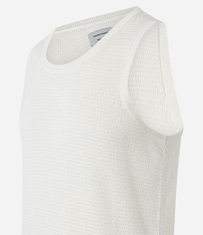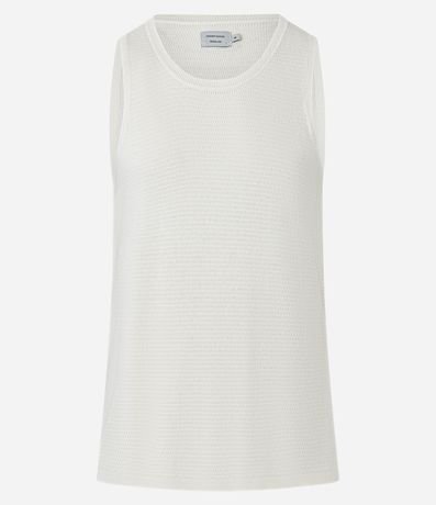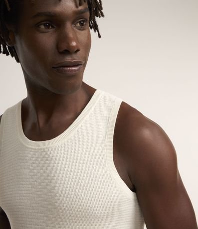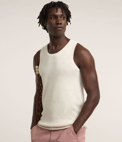 Ref: Regata em algodão com gola redonda, textura e confeccionada em tricô.