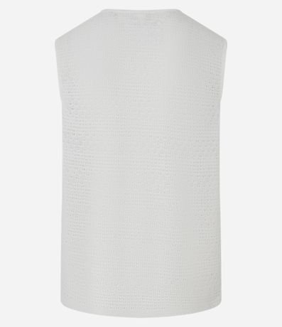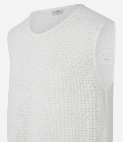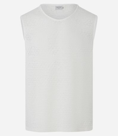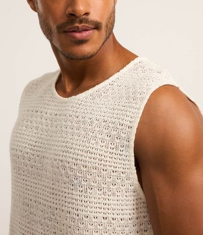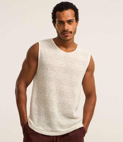 Ref: Regata masculina mais sustentável, com gola redonda, cava média. Peça em tricô com textura open work que permite maior respirabilidade para o corpo e charme no seu look.