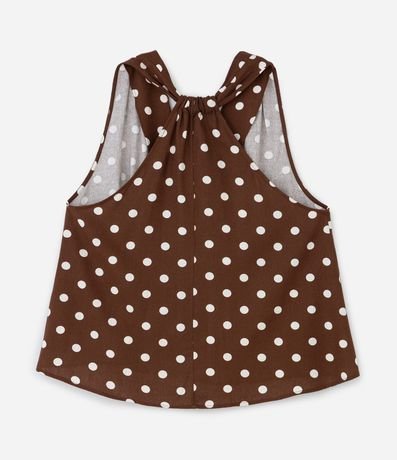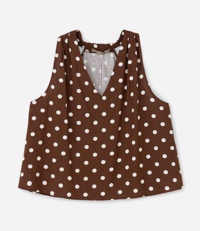 Ref: Blusa sem mangas confeccionada em viscolinho. A regata tem estampa poá e decote V.