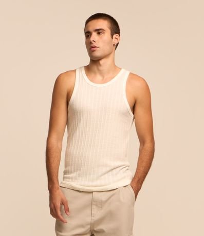 Ref: Regata masculina, confeccionada em viscose e poliéster, confortável e versátil, com gola redonda e textura.