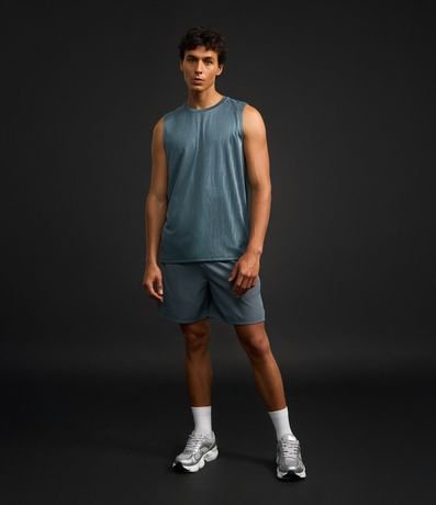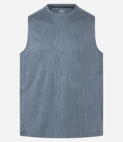 Ref: Regata masculina, esportiva, modelo regular, com gola redonda. Peça contém estampa heat print, recortes e detalhe de linhas.