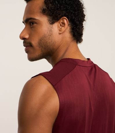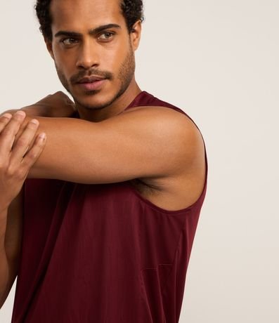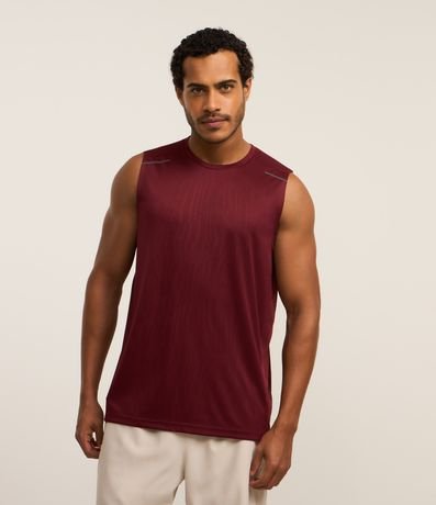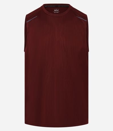 Regata masculina, esportiva, modelo regular, com gola redonda. Peça contém estampa heat print, recortes e detalhe de linhas.