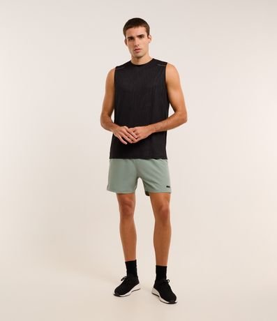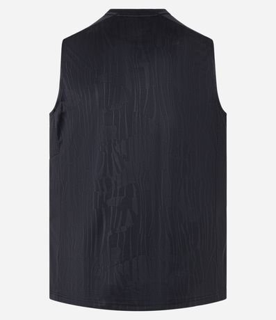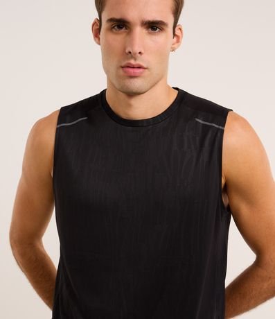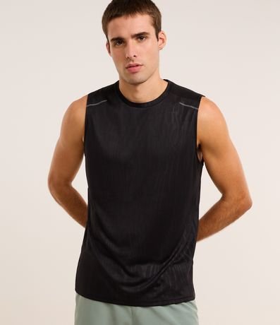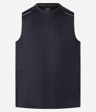 Ref: Regata masculina, esportiva, modelo regular, com gola redonda. Peça contém estampa heat print, recortes e detalhe de linhas.