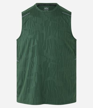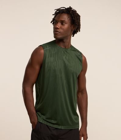 Ref: Regata masculina, esportiva, modelo regular, com gola redonda. Peça contém estampa heat print, recortes e detalhe de linhas.