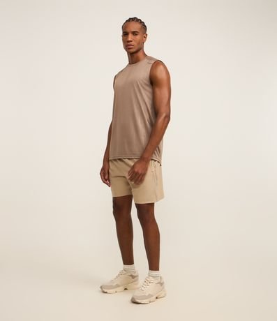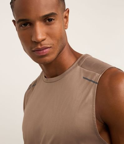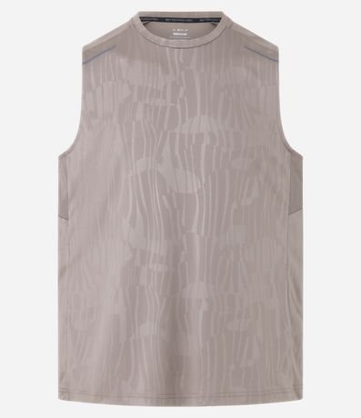 Ref: Regata masculina, esportiva, modelo regular, com gola redonda. Peça contém estampa heat print, recortes e detalhe de linhas.