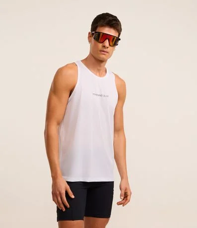 Regata esportiva masculina confeccionada em poliéster com boas práticas ambientais, no modelo regular. Peça possui tecnologia dry, gola redonda e estampa lettering.