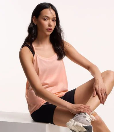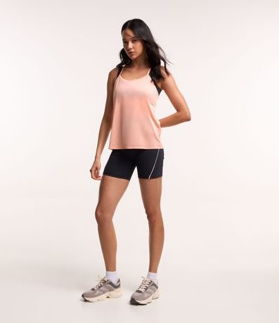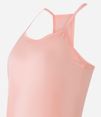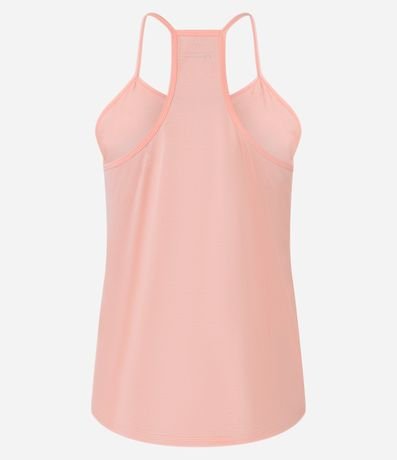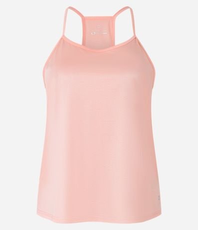 Regatinha feminina esportiva com decote redondo, alças finas, confeccionada em poliéster.