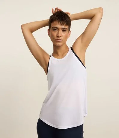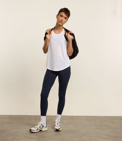 Ref: Regata feminina de modelo esportivo, básica, com alças finas. Peça feita a partir de material de fio reciclado.