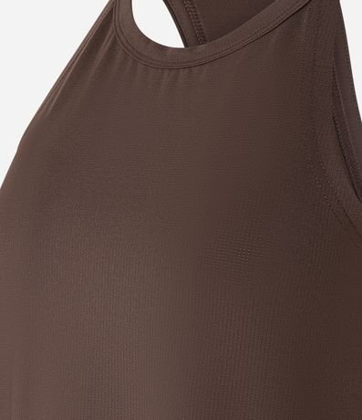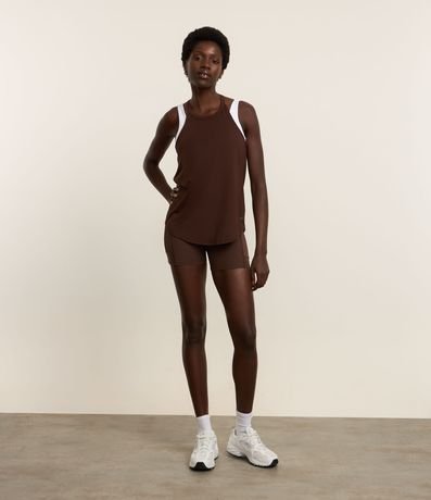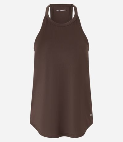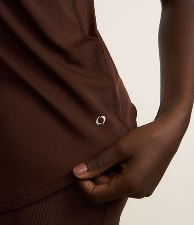 Ref: Regata feminina de modelo esportivo, básica, com alças finas. Peça feita a partir de material de fio reciclado.