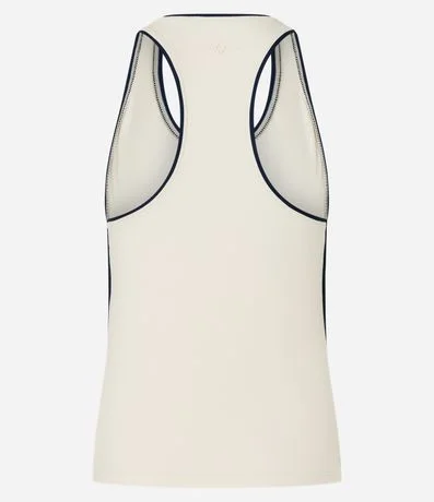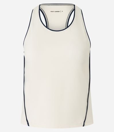 Ref: Blusa esportiva sem mangas confeccionada em microfibra sem estampa. A regata tem gola halterneck, decote nadador nas costas e detalhe de frisos contrastantes.