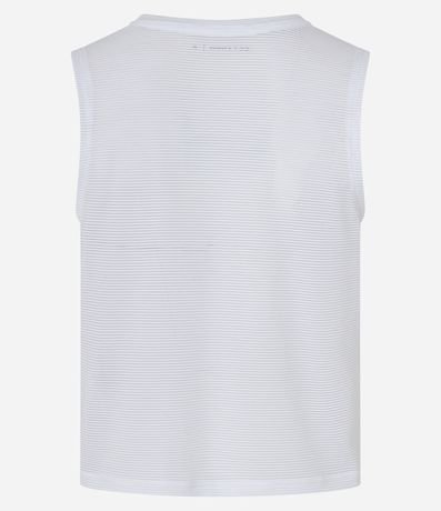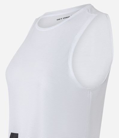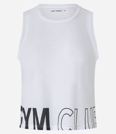Ref: Blusa esportiva sem mangas. A peça confeccionada em microfibra tem textura de listras horizontais, gola redonda e estampa GYM CLUB na barra.