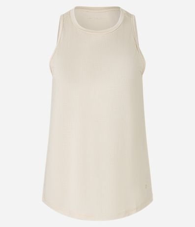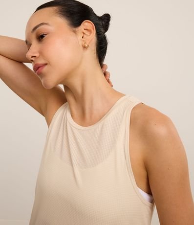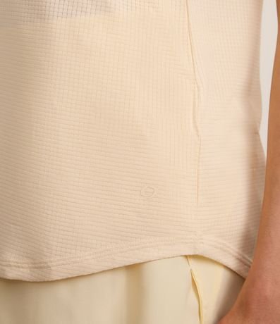 Blusa esportiva sem mangas confeccinada em microfibra leve e texturizada de quadradinhos.