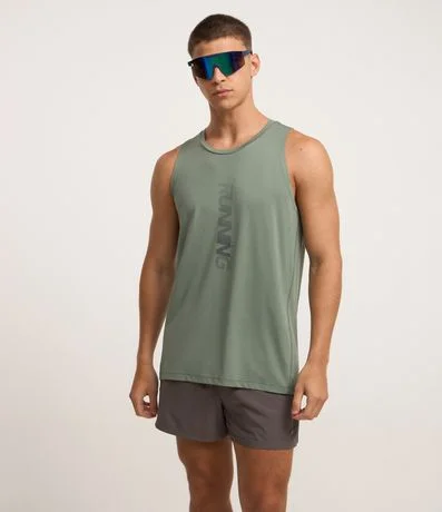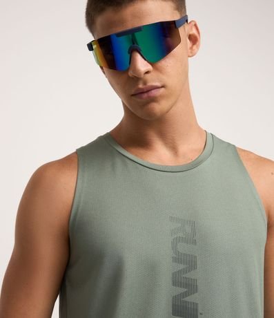 Ref: Regata masculina esportiva confeccionada em tecnologia dry com gola redonda e estampa localizada lettering refletiva.