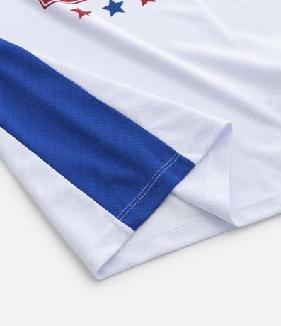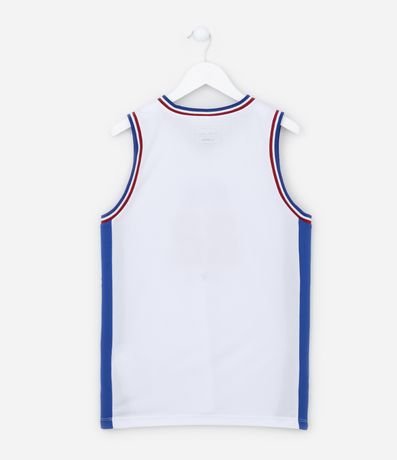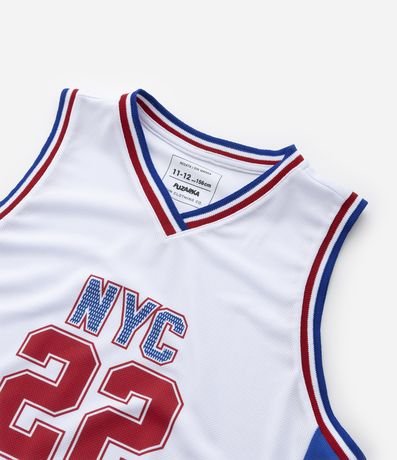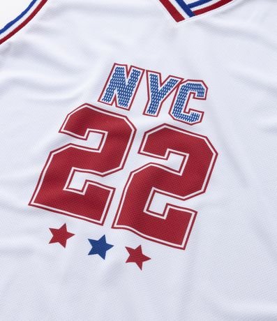 Regata infantil com gola redonda, estampa NYC estilo basquete e com detalhes nas cavas.