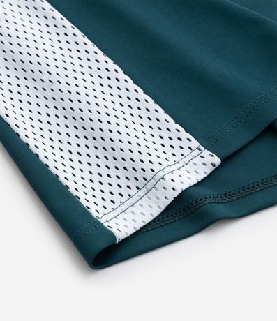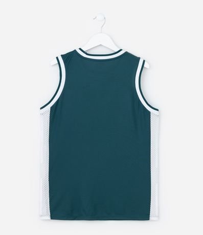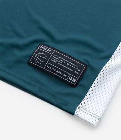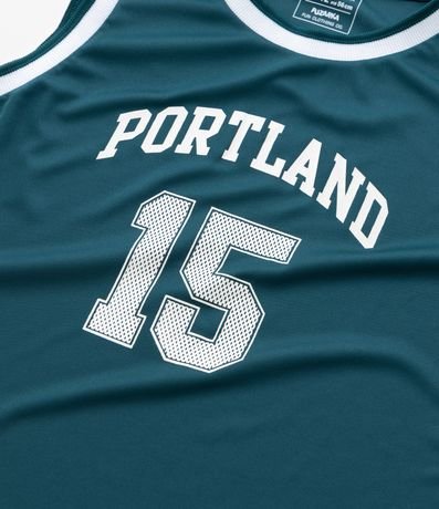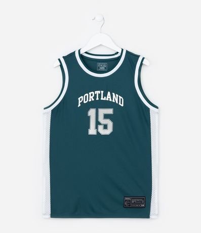 Ref: Regata infantil esportiva de gola redonda, com recortes laterais contrastantes e lettering "Portland 15".