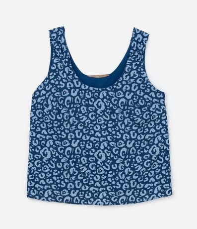 Ref: Regata de viscose com gola U, alças largas e estampa de animal print oncinha.