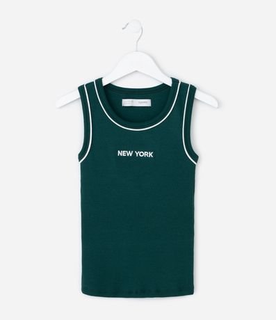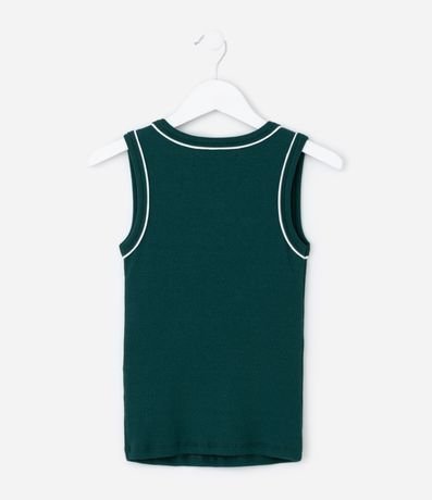 Ref: Regata infantil confeccionada em ribana canelada, com gola halter e viés contrastante que valoriza o design. Possui modelagem baby look e bordado frontal com lettering, entregando visual moderno e agradável ao uso. Confeccionada em algodão certificado BCI.