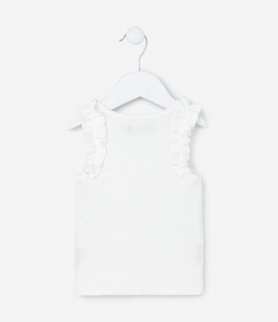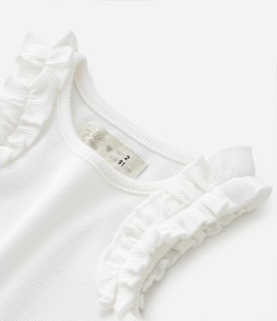 Ref: Regatinha infantil confeccionada em algodão com textura canelada, gola redonda, sem mangas, babadinhos nas cavas e sem estampa, básica e fofa!