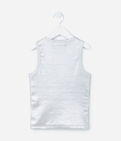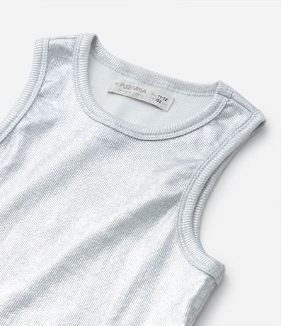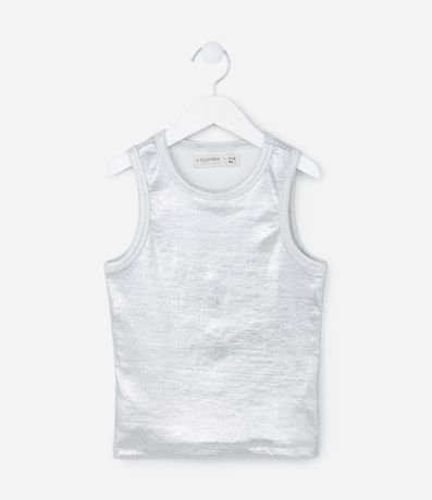 Regata infantil caneladinha, com decote redondo, e textura em foil metalizada.