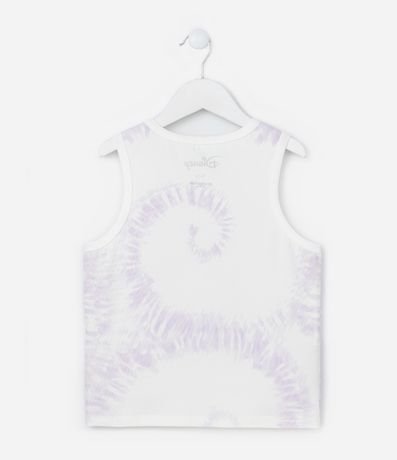 Regata infantil confeccionada em algodão com gola redonda e estampa tie dye com Angel, de Lilo e Stitch.