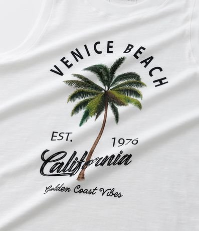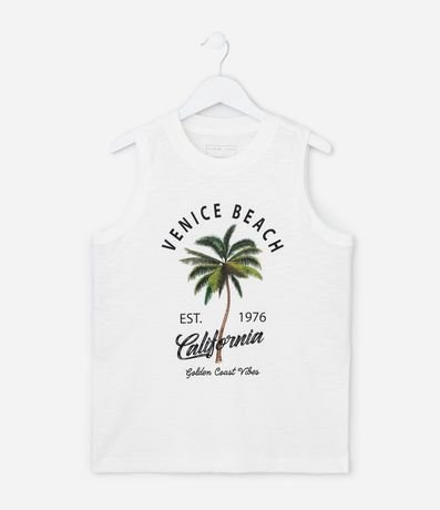 Ref: Regata infantil confeccionada em algodão mais sustentável através de boas práticas ambientais. Possui gola redonda, cavas e estampa de coqueiro.