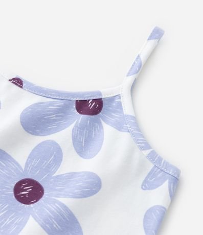 Regata infantil confeccionada em cotton, com alças finas e estampa floral delicada.